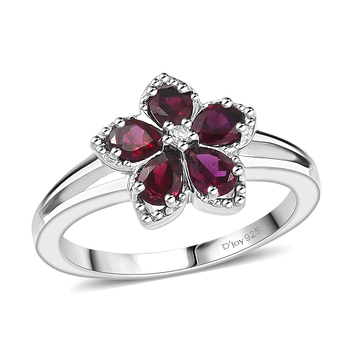 Bloom with grace wearing this D’Joy anthill garnet ring in sterling silver. The luxury flower design features premium anthill garnet with moissanite accents. Your unique floral ring will draw admiration wherever you go.