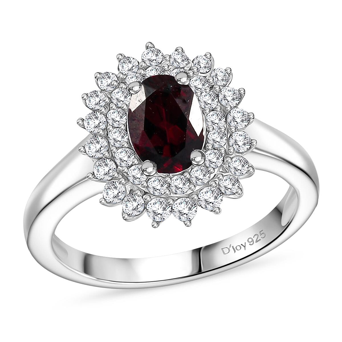 D'Joy Premium Anthill Garnet and Moissanite 1.40 ctw Sunburst Ring in Rhodium Over Sterling Silver (Size 5.0)