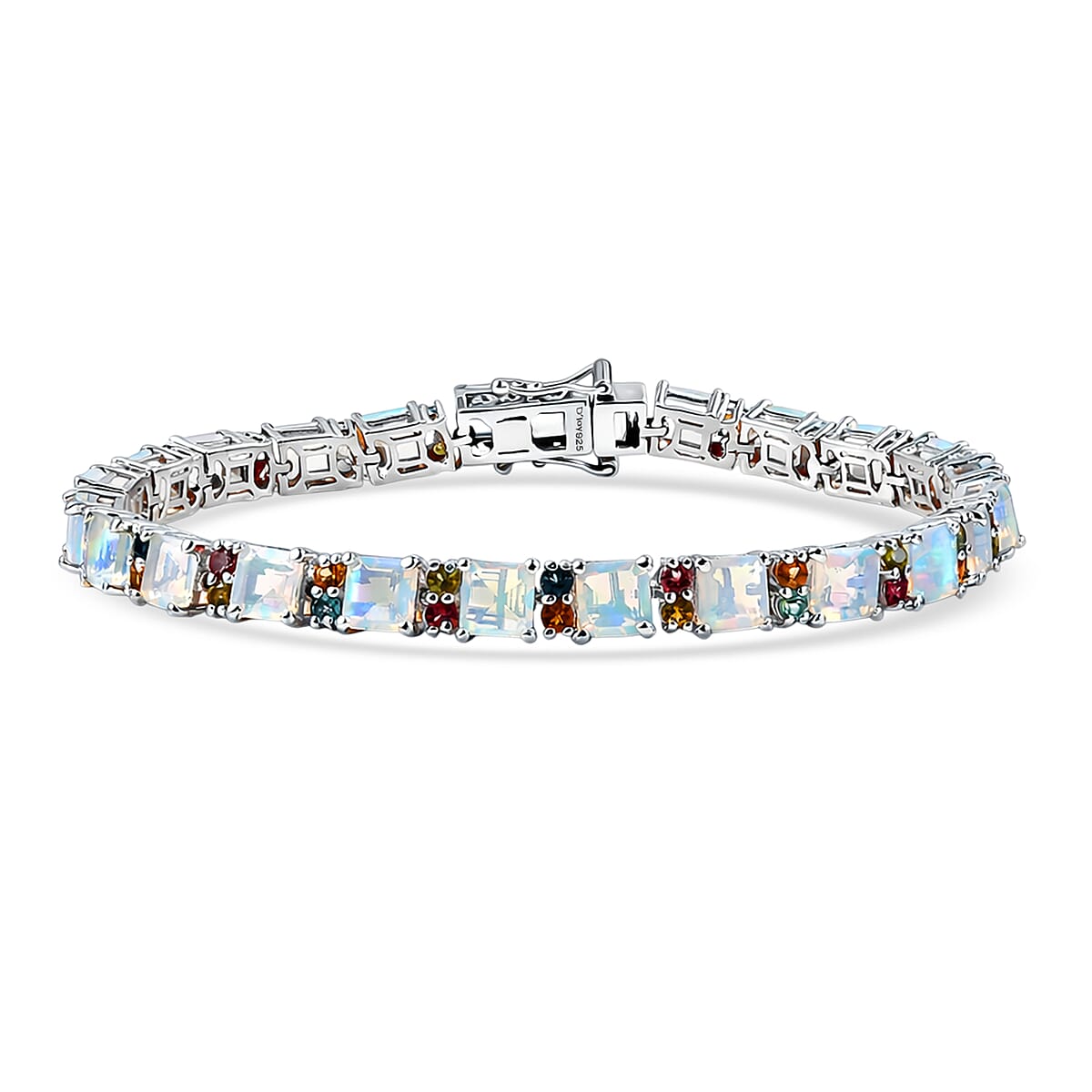 D'Joy Premium Asscher Cut Ethiopian Welo Opal and Multi Tourmaline 10.15 ctw Firelight Bracelet in Rhodium Over Sterling Silver (7.25 In) (Del. In 8-10 Days)