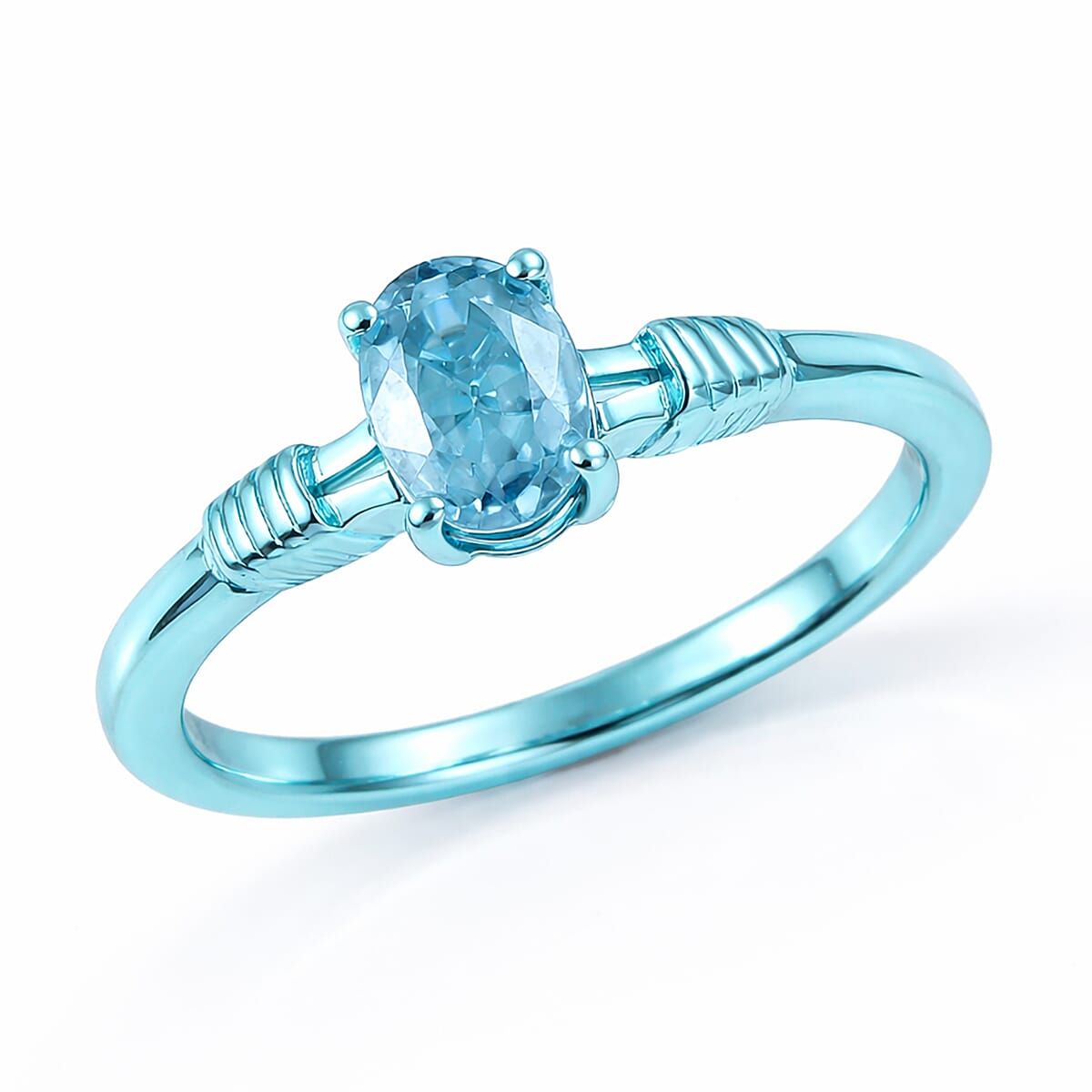 D'Joy Premium Cambodian Blue Zircon 1.30 ctw Ocean wave Ring in Blue E-coat Sterling Silver (Size 9.0)
