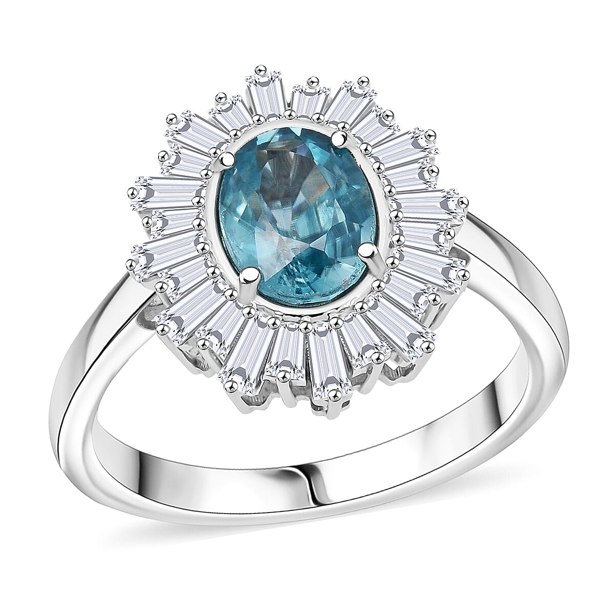D'Joy Premium Cambodian Blue Zircon and Moissanite 2.70 ctw Azure Flare Ring in Rhodium Over Sterling Silver (Size 10.0)