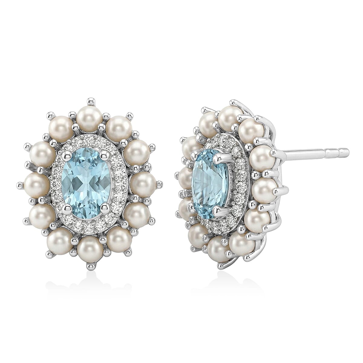 D'Joy Premium Cambodian Blue Zircon and Multi Gemstone 1.60 ctw Pearl Treasure Earrings in Rhodium Over Sterling Silver