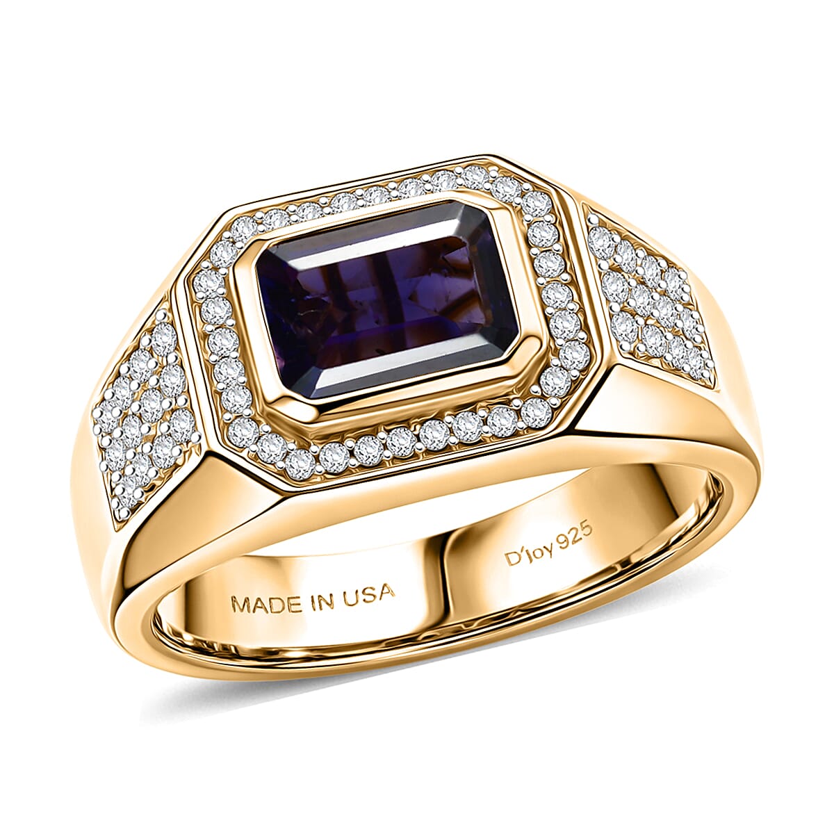 D'Joy Premium Catalina Iolite and Moissanite 1.80 ctw Men's Ring in 18K Vermeil Yellow Gold Over Sterling Silver (Size 11.0)