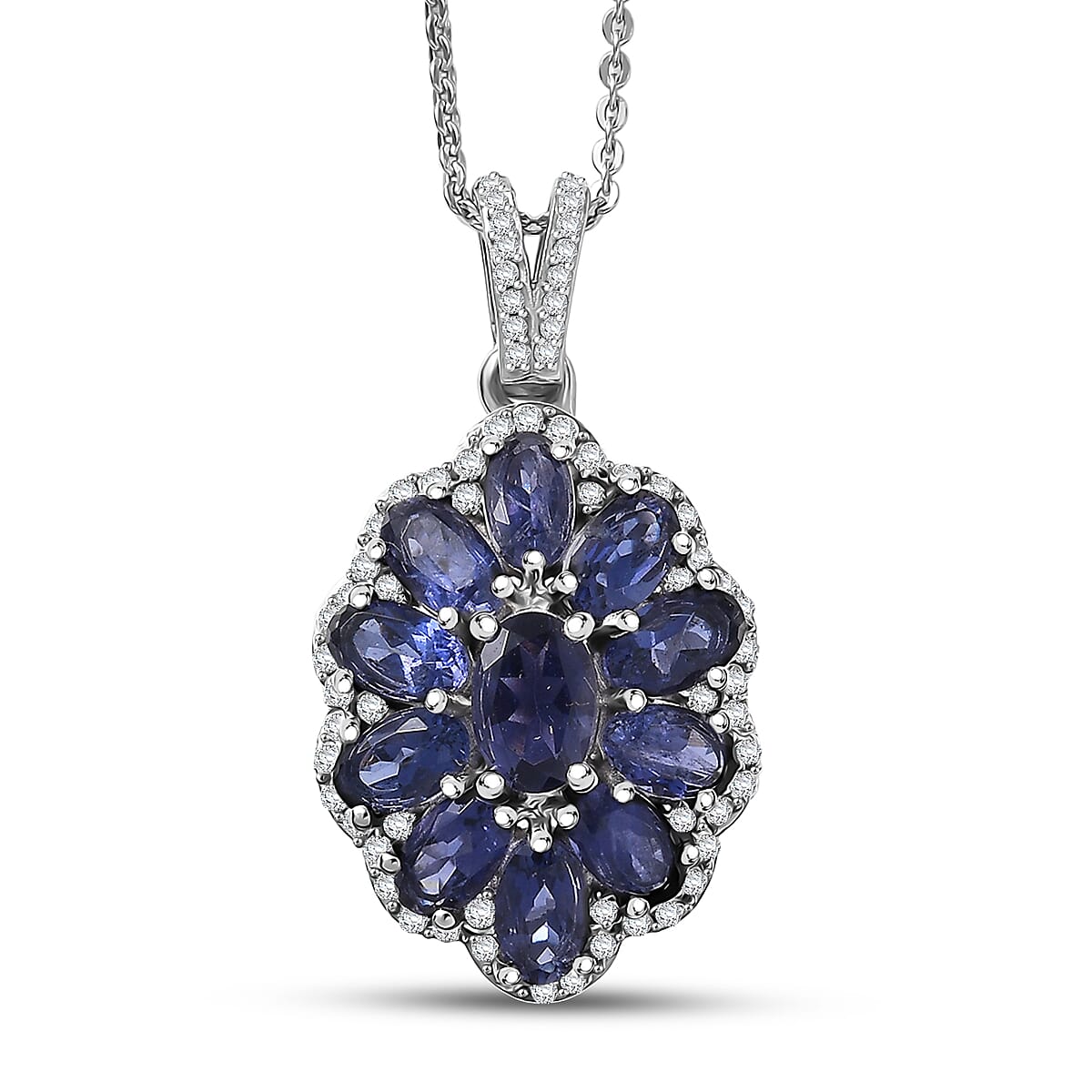D'Joy Premium Catalina Iolite and Moissanite 2.85 ctw Pendant Necklace in Rhodium Over Sterling Silver 20 Inches