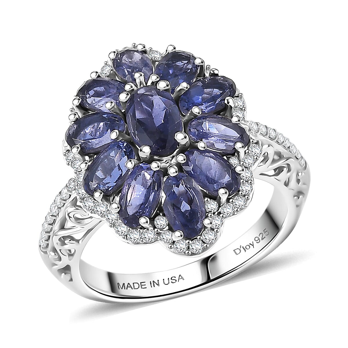 D'Joy Premium Catalina Iolite and Moissanite 3.20 ctw Ring in Rhodium Over Sterling Silver (Size 6.0)
