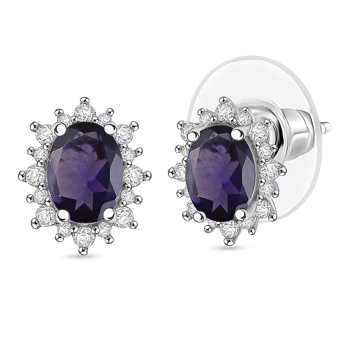 D'Joy Premium Catalina Iolite and White Zircon 2.26 ctw Earrings in Rhodium Over Sterling Silver