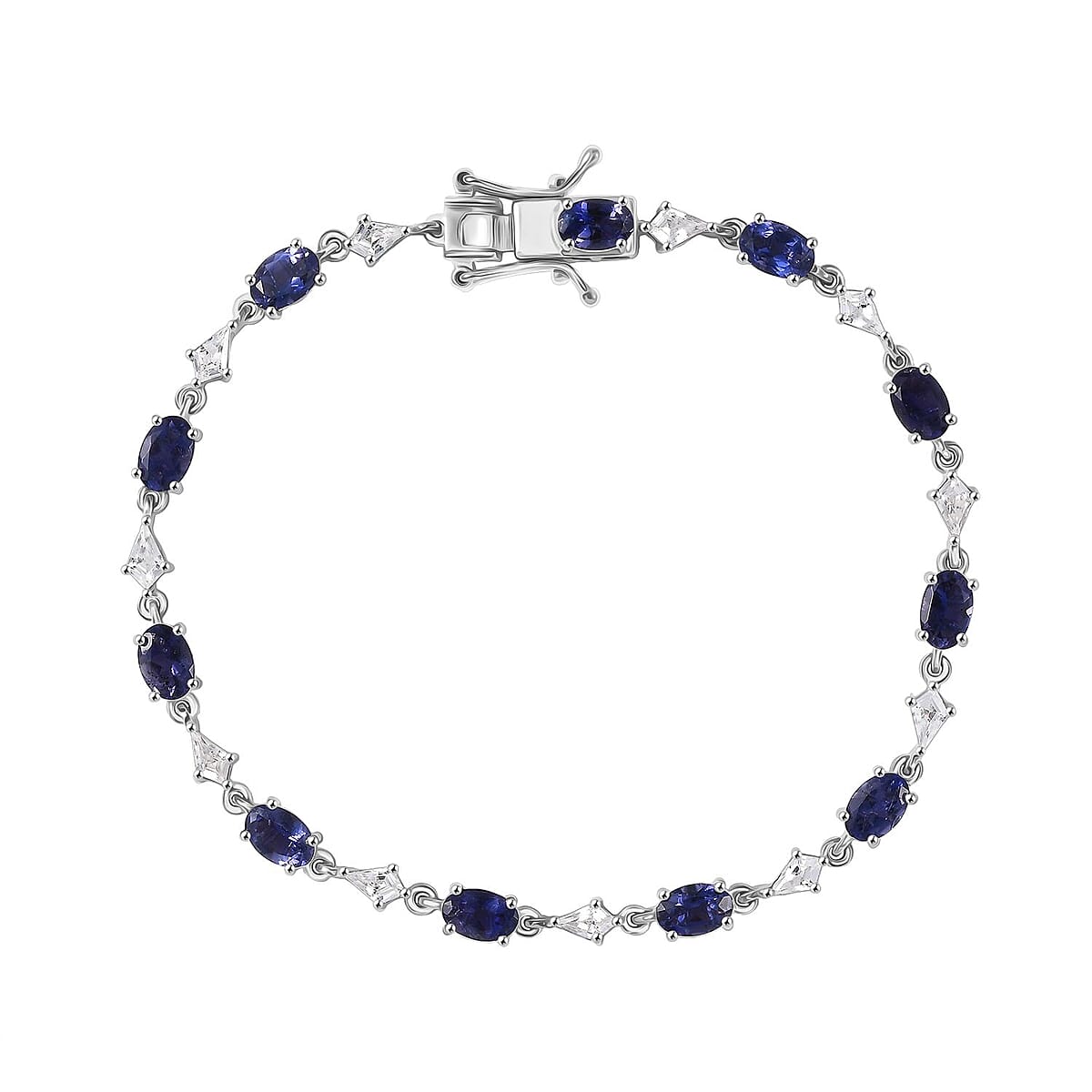 D'Joy Premium Catalina Iolite and White Zircon 6.35 ctw Crown Legacy Bracelet in Rhodium Over Sterling Silver (7.25 In)