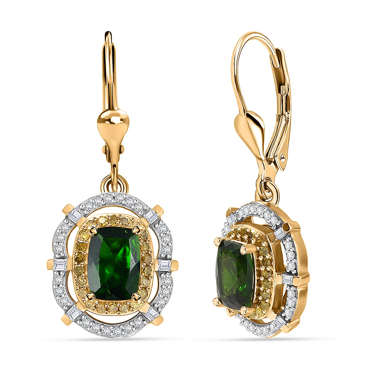 D'Joy Premium Chrome Diopside, Yellow Diamond and Diamond 2.30 ctw Earrings in 18K Vermeil Yellow Gold Over Sterling Silver