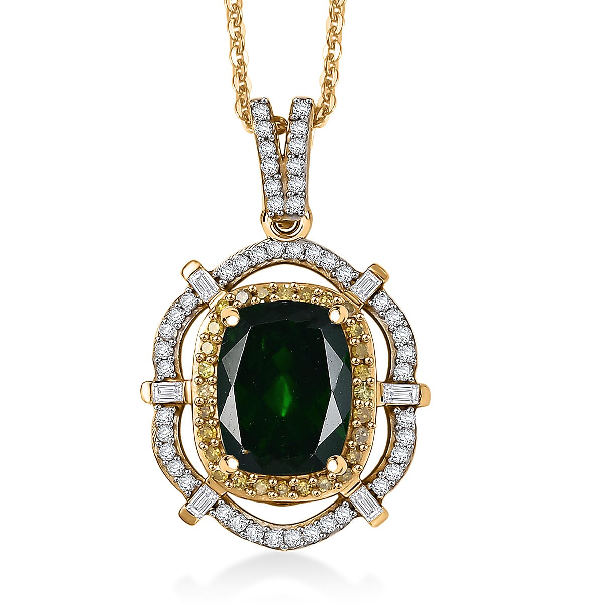 D'Joy Premium Chrome Diopside, Yellow Diamond (IR) and Diamond 2.50 ctw Pendant Necklace in 18K Vermeil Yellow Gold Over Sterling Silver 20 Inches