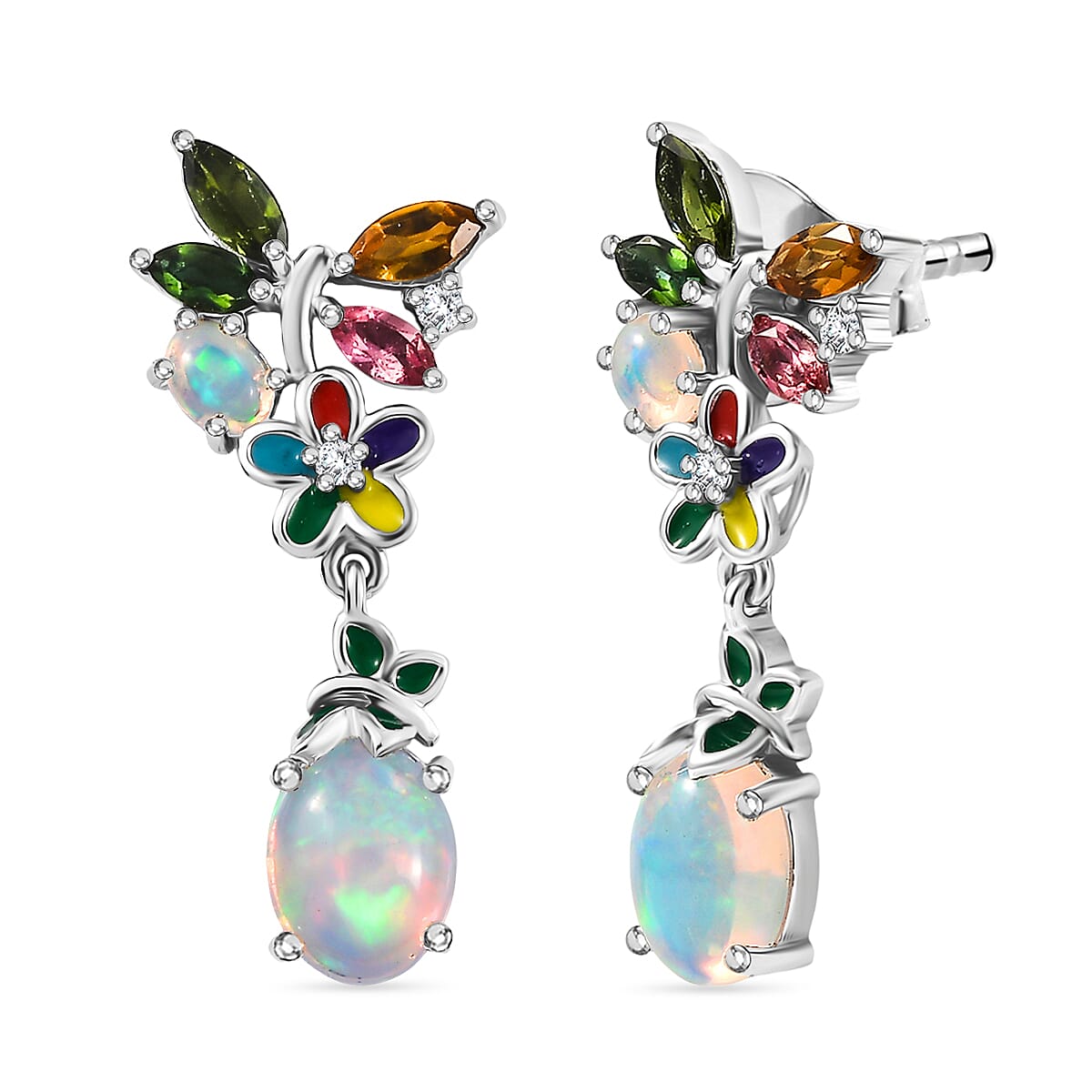 DJoy Premium Ethiopian Welo Opal and Multi Gemstone 2.70 ctw Earrings in Rhodium Over Sterling Silver