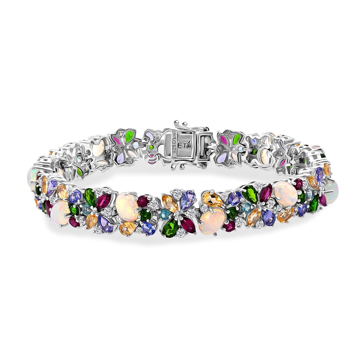 D'Joy Premium Ethiopian Welo Opal and Multi Gemstone 21.00 ctw Bracelet in Rhodium Over Sterling Silver (6.50 In)