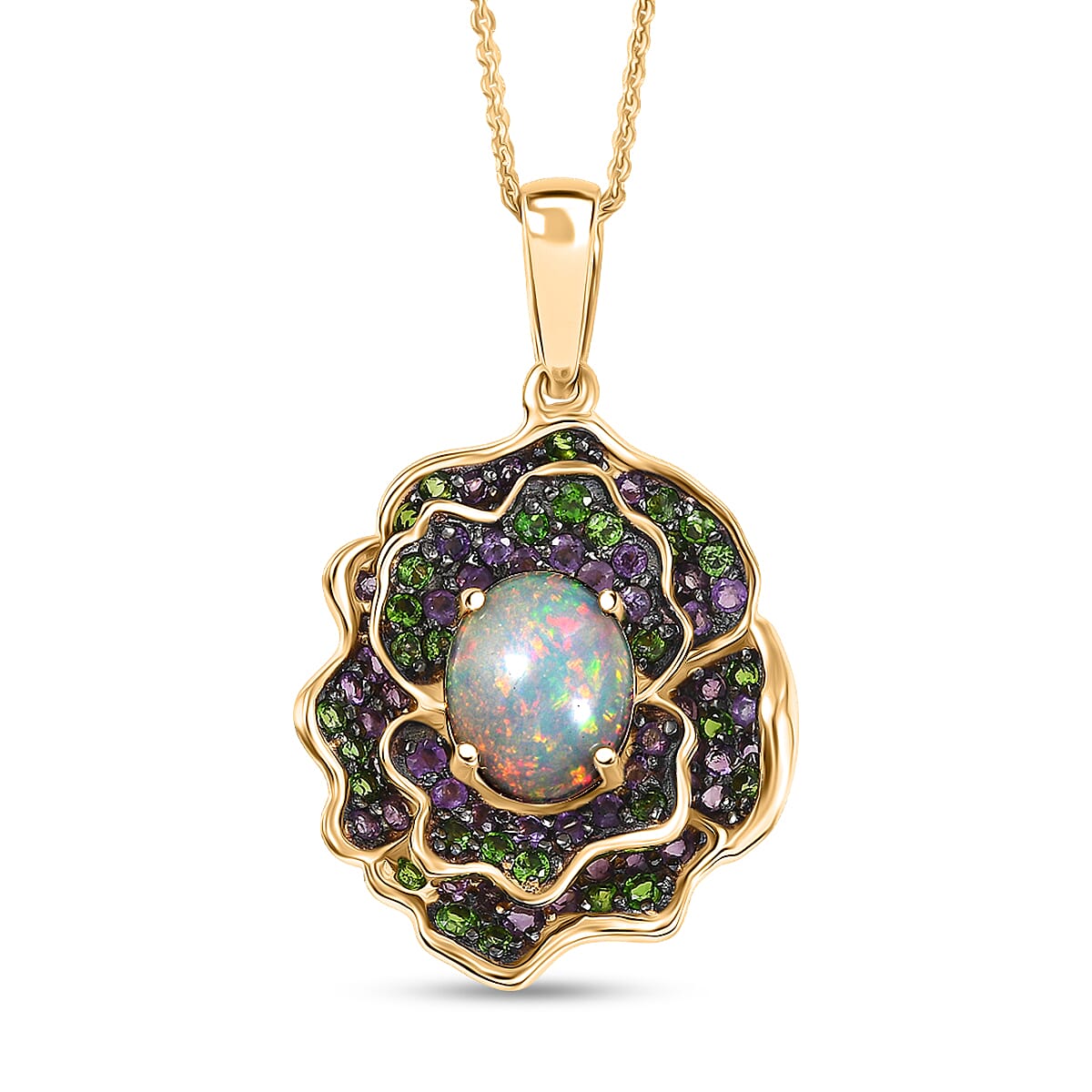 D'Joy Premium Ethiopian Welo Opal and Multi Gemstone 3.20 ctw Pendant Necklace in 18K Vermeil Yellow Gold Over Sterling Silver 20 Inches