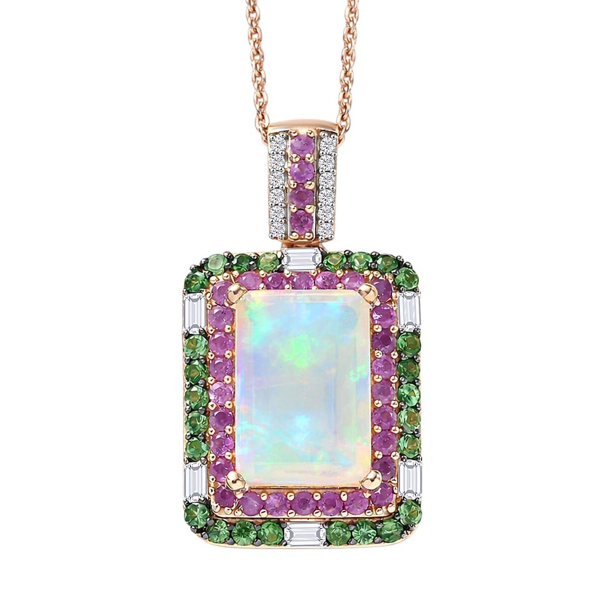 D'Joy Premium Ethiopian Welo Opal and Multi Gemstone 4.00 ctw Aurora Opal Pendant Necklace in 18K Vermeil Rose Gold Over Sterling Silver 20 Inches (Del. in 5-7 Days)