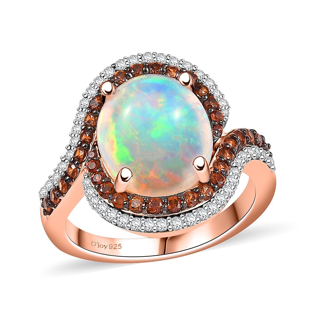 D'Joy Premium Ethiopian Welo Opal and Multi Gemstone 4.30 ctw Galaxy Universe Ring in 18K Vermeil Rose Gold Over Sterling Silver (Size 8.0)