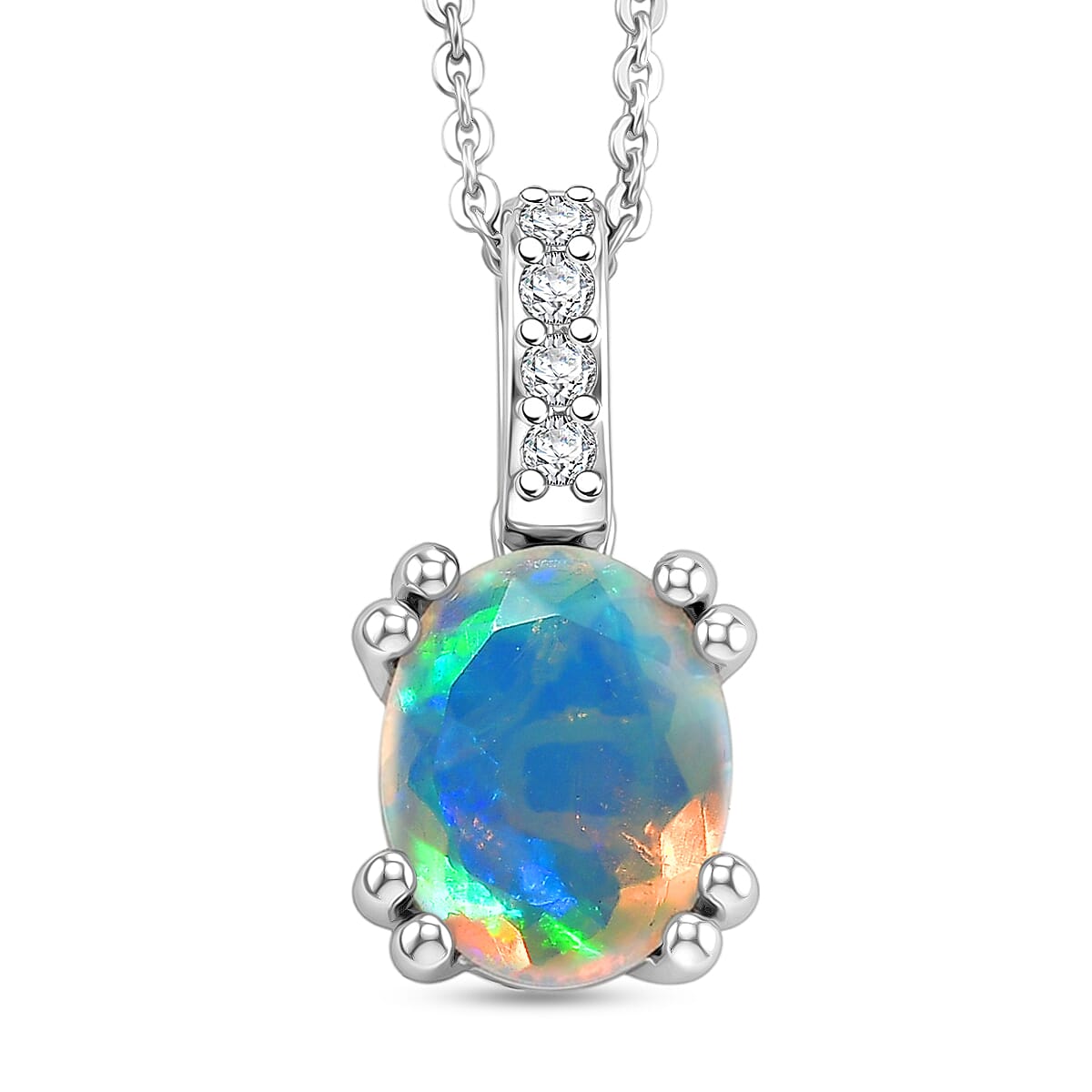D'Joy Premium Ethiopian Welo Opal and White Zircon 1.10 ctw Pendant Necklace in Rhodium Over Sterling Silver 20 Inches