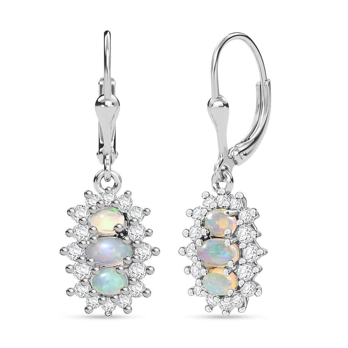 D'Joy Premium Ethiopian Welo Opal and White Zircon 2.00 ctw Earrings in Platinum Over Sterling Silver