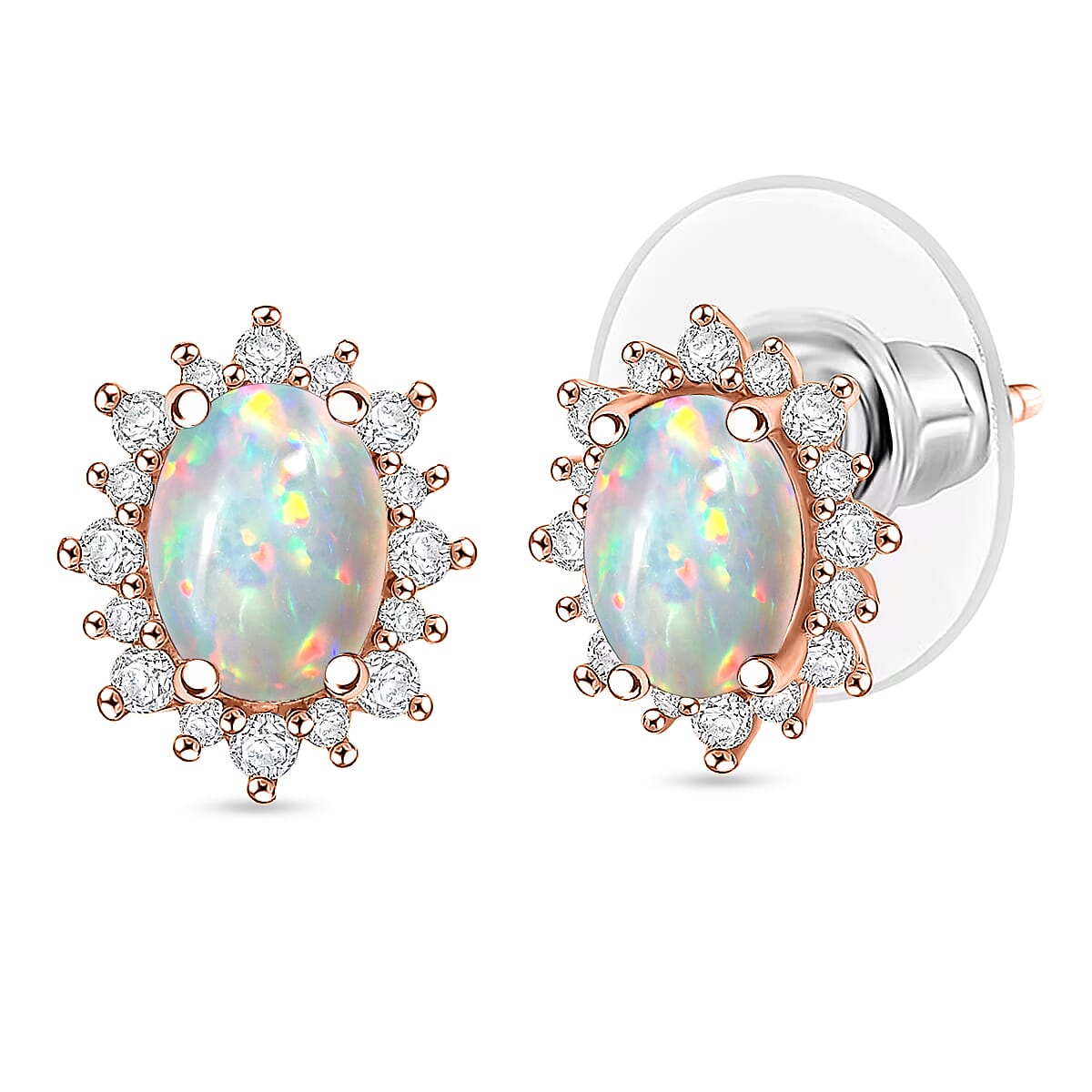 D'Joy Premium Ethiopian Welo Opal and White Zircon 2.06 ctw Earrings in 18K Vermeil Rose Gold Over Sterling Silver