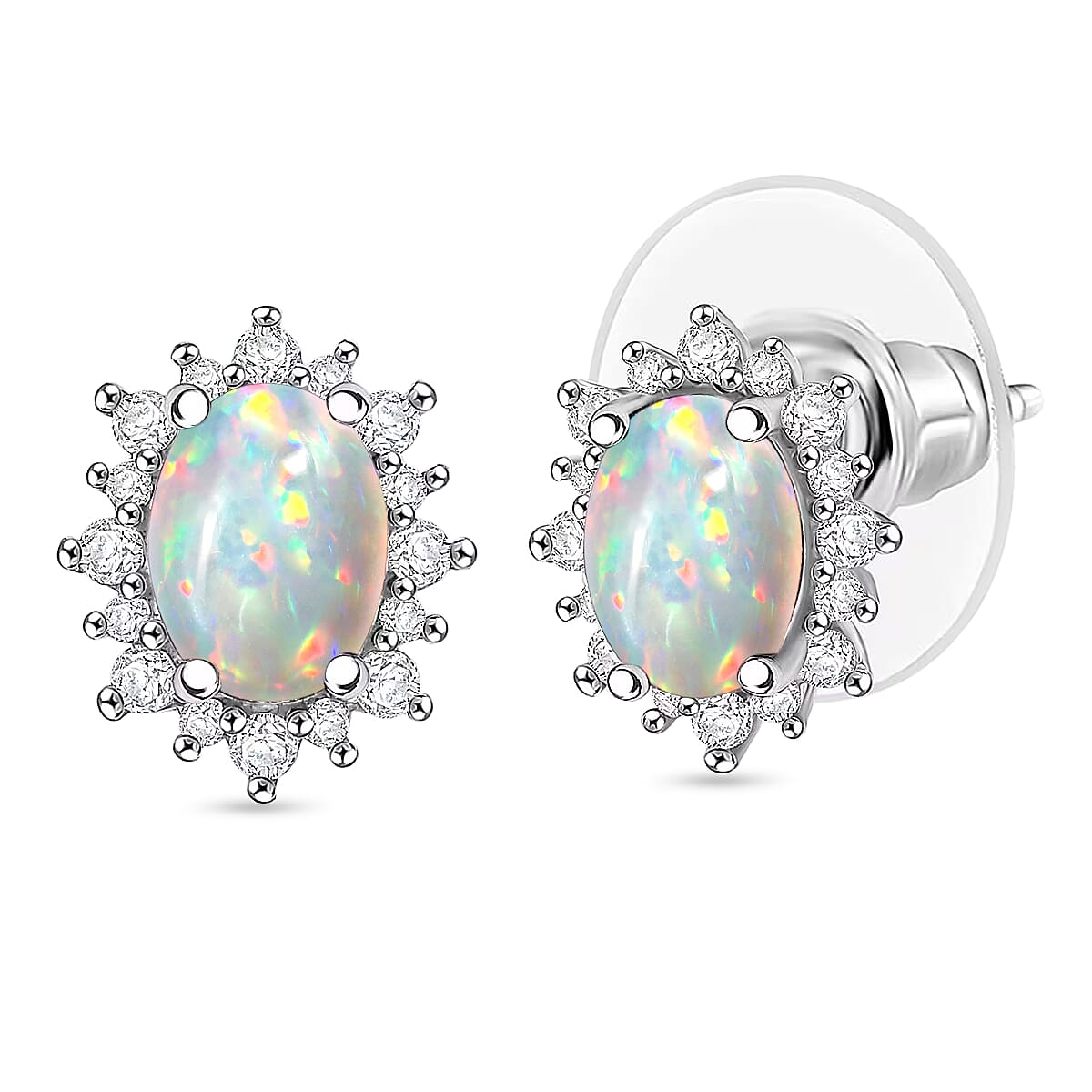 D'Joy Premium Ethiopian Welo Opal and White Zircon 2.06 ctw Earrings in Rhodium Over Sterling Silver
