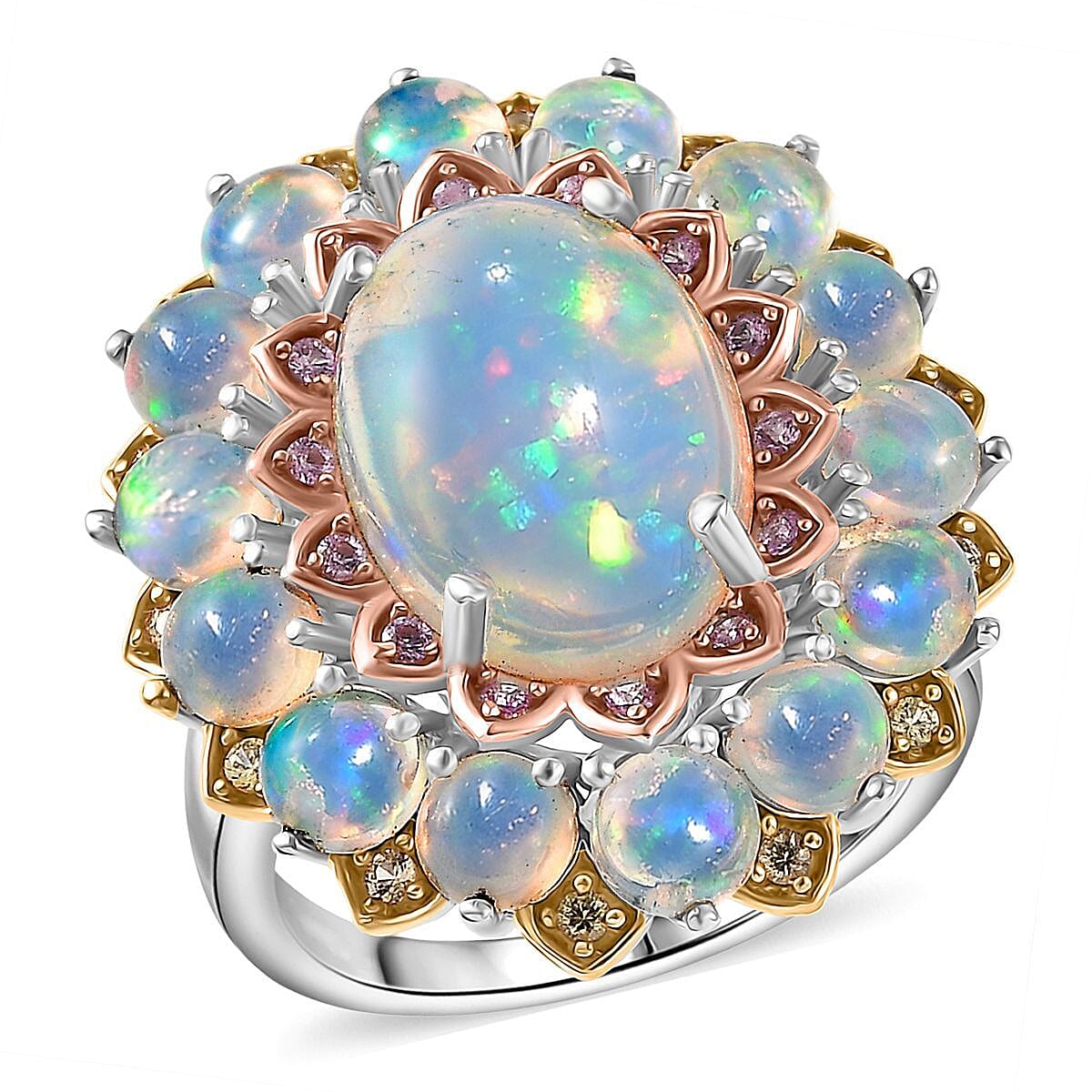 D'Joy Premium Ethiopian Welo Opal, Multi Gemstone Ring in Rhodium Over Sterling Silver (Size 6.0) 6.26 ctw