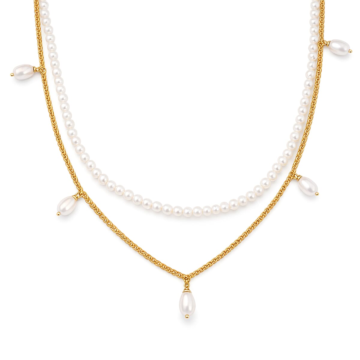 D'Joy Premium Freshwater Pearl Necklace in 18K Vermeil Yellow Gold Over Sterling Silver 14-16 Inches