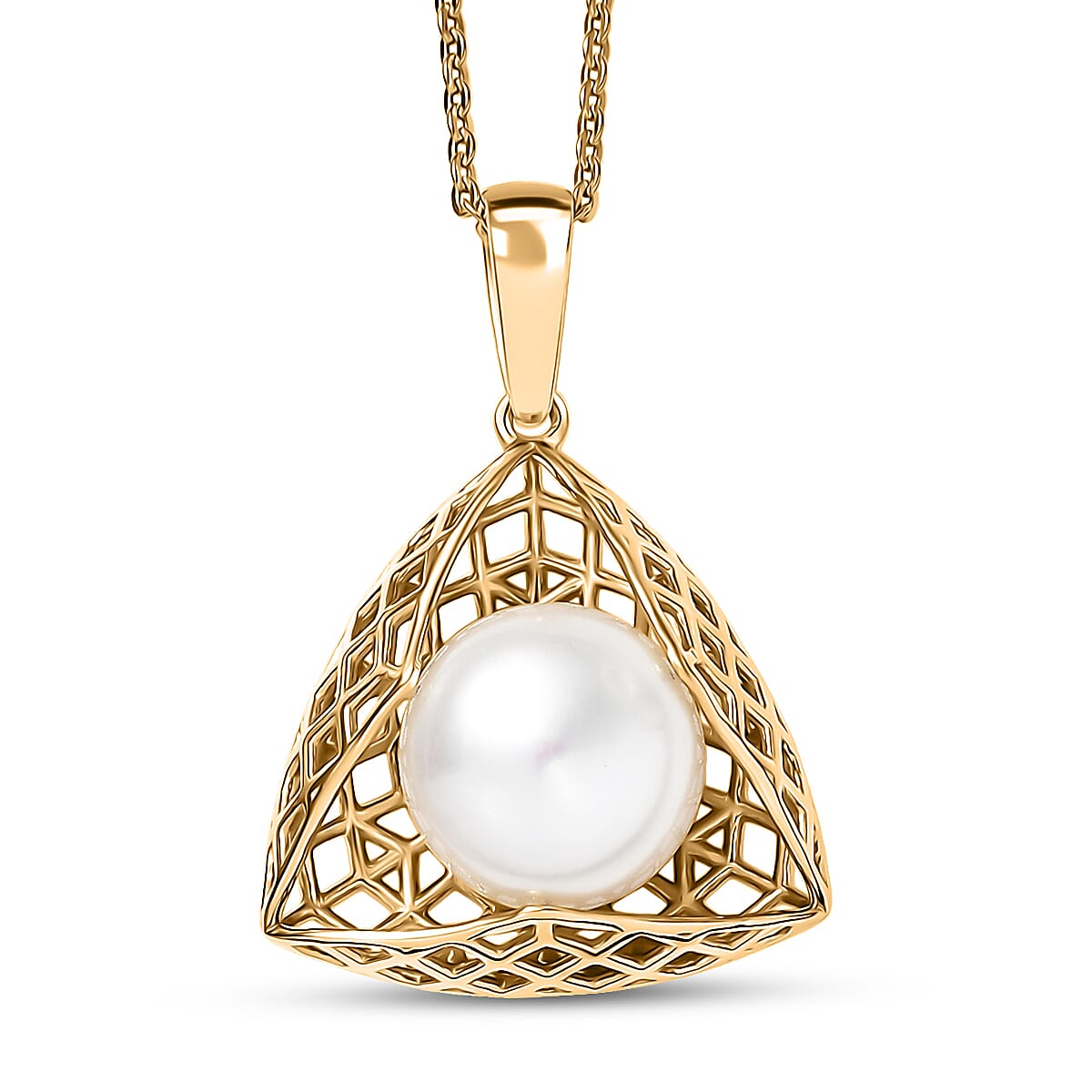 D,Joy Premium Freshwater Pearl Pendant Necklace in 18K Vermeil Yellow Gold Over Sterling Silver 20 Inches