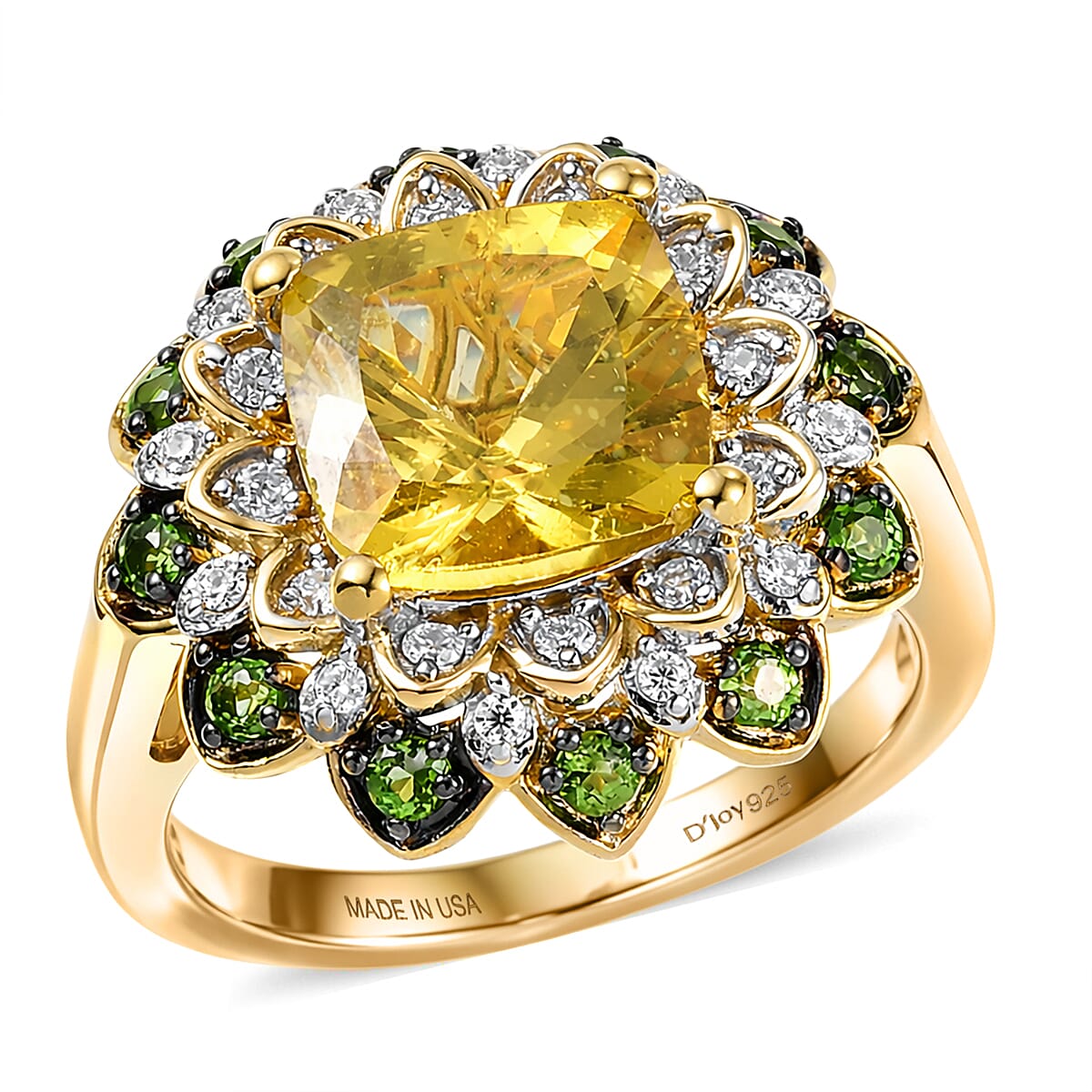 D'Joy Premium Golden Apatite, Multi Gemstone Ring in 18K Vermeil YG Over Sterling Silver (Size 10.0) 3.85 ctw