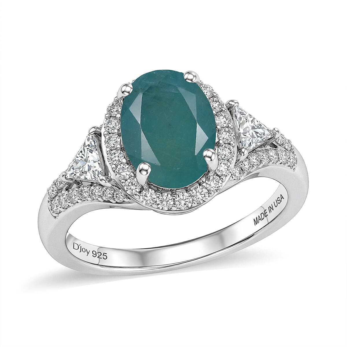D'Joy Premium Grandidierite and Moissanite 2.60 ctw Crowned Light Ring in Rhodium Over Sterling Silver (Size 10.0)