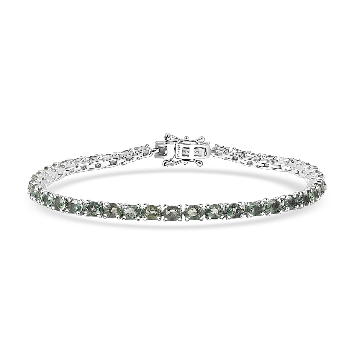 D'Joy Premium Green Sapphire 11.25 ctw Bracelet in Rhodium Over Sterling Silver (7.25 In)