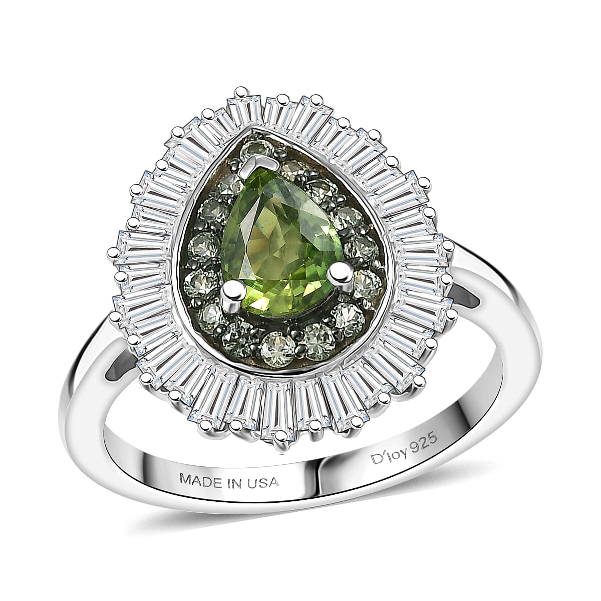 D'Joy Premium Green Sapphire and Moissanite 1.75 ctw Green Fire Drop Ring in Rhodium Over Sterling Silver (Size 7.0)