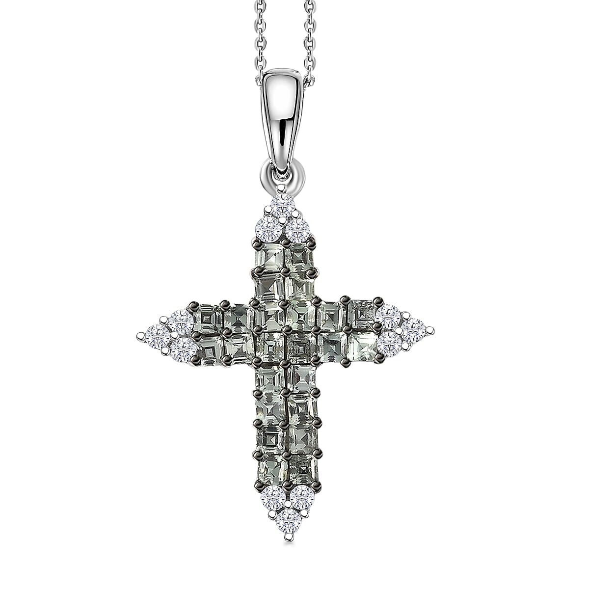Refine your style with this D’Joy green sapphire and moissanite pendant necklace in 925 sterling silver. This elegant cross pendant necklace radiates vibrant color with dazzling moissanite brilliance. Perfect for honoring faith with refined sparkle and timeless sophistication.