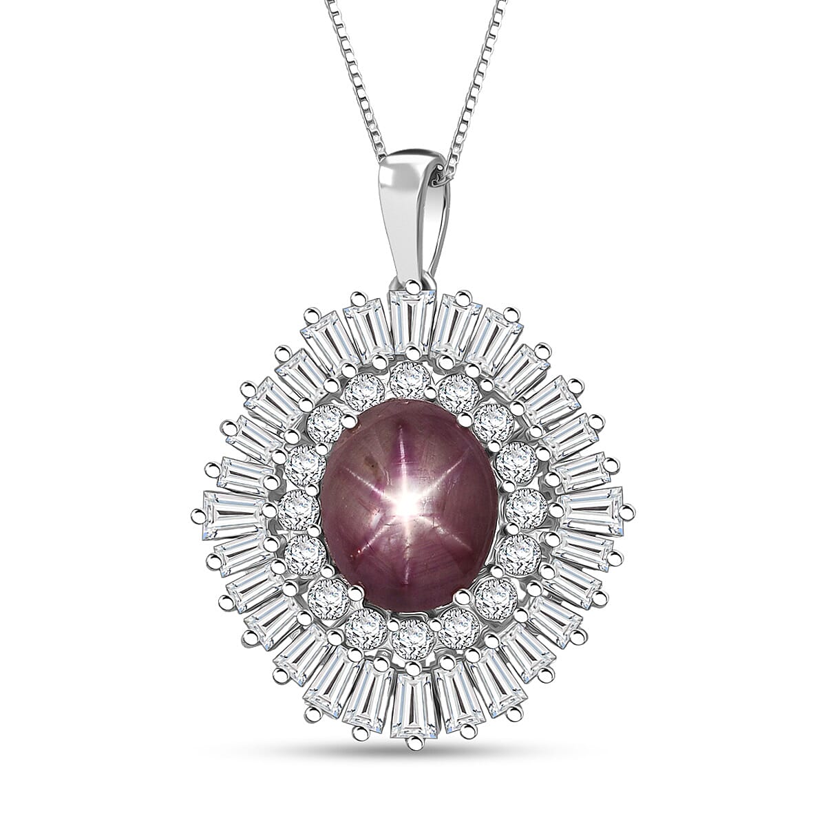 D'Joy Premium Indian Star Ruby and Moissanite 9.65 ctw Flame Crown Pendant Necklace in Rhodium Over Sterling Silver 20 Inches