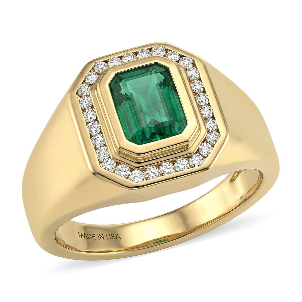 D'Joy Premium Kagem Zambian Emerald and Moissanite 1.75 ctw Men's Ring in 18K Vermeil Yellow Gold Over Sterling Silver (Size 14.0)