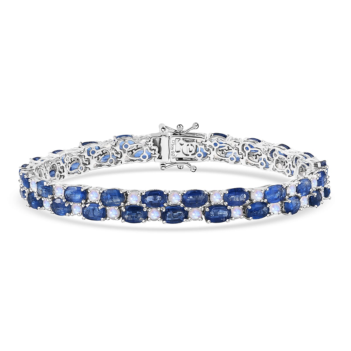Elevate your style with this D’Joy Kashmir kyanite and rainbow moonstone bracelet in 925 sterling silver. This elegant gemstone bracelet for women features vibrant kyanite paired with luminous rainbow moonstone accents. Perfect for adding a touch of mystical elegance to both everyday and special occasion looks.