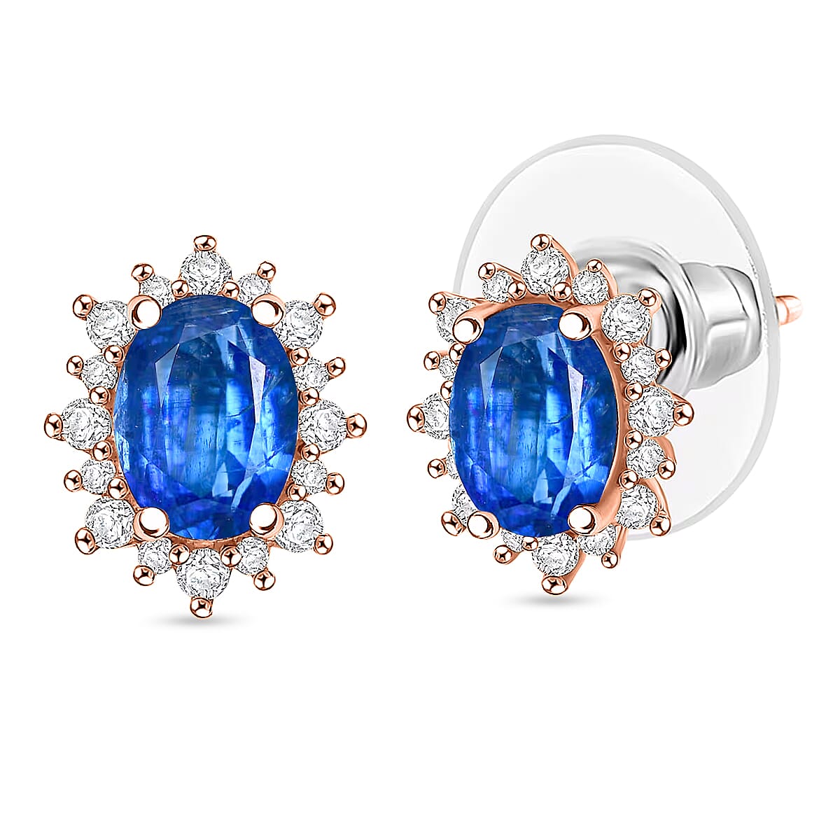 D'Joy Premium Kashmir Kyanite and White Zircon 2.86 ctw Earrings in 18K Vermeil Rose Gold Over Sterling Silver