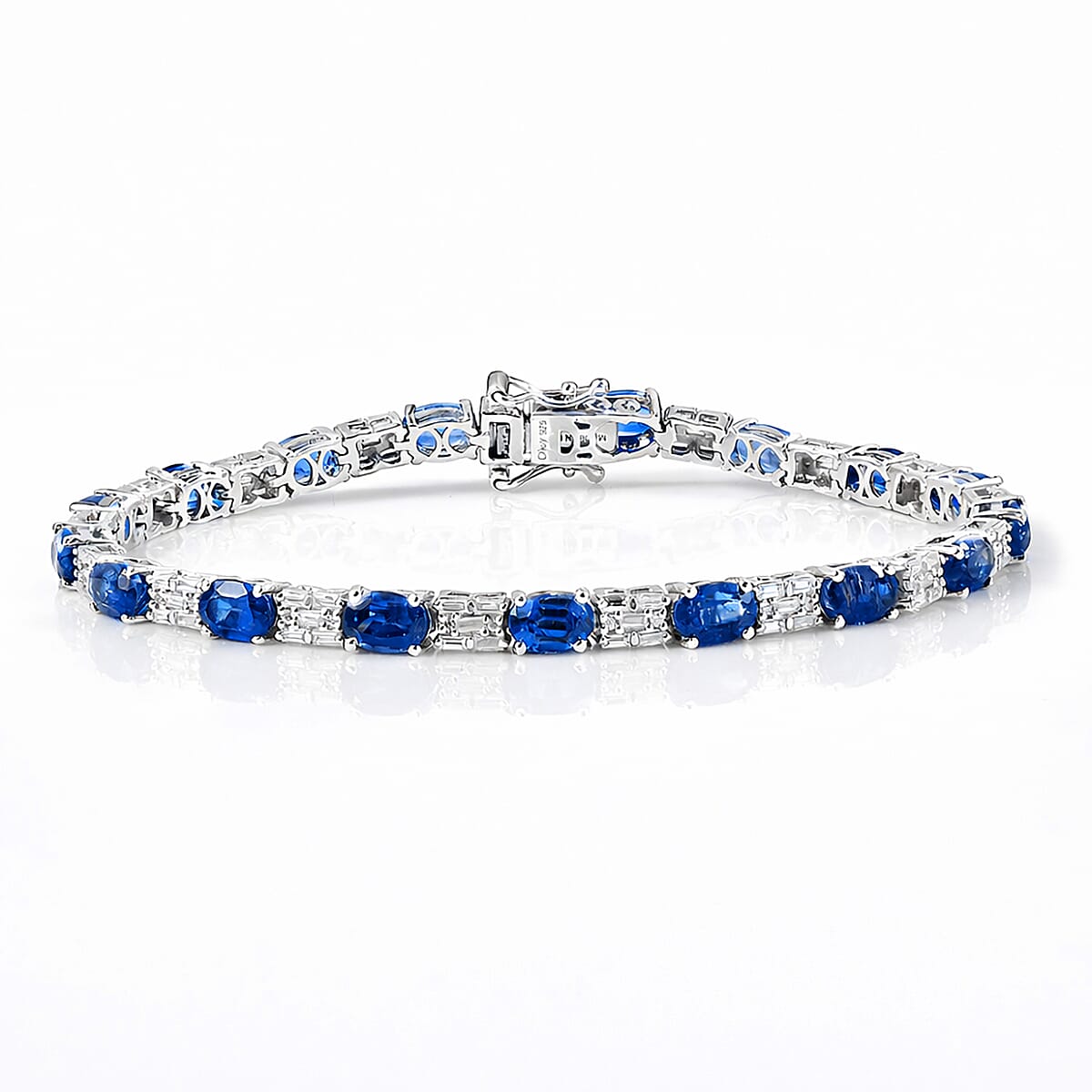 D'Joy Premium Kashmir Kyanite, Moissanite Bracelet in Rhodium Over Sterling Silver (7.25 In) 12.00 ctw