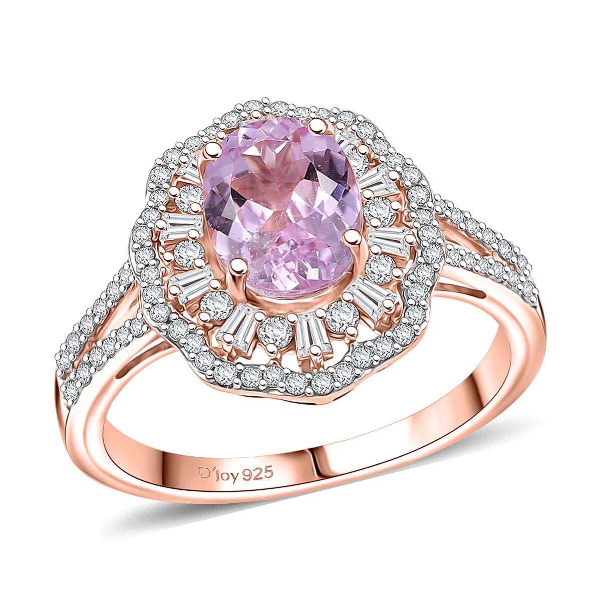 D'Joy Premium Kunzite, Moissanite 3.30 ctw Blooming Floral Ring in 18K Vermeil Rose Gold Over Sterling Silver (Size 7.0)