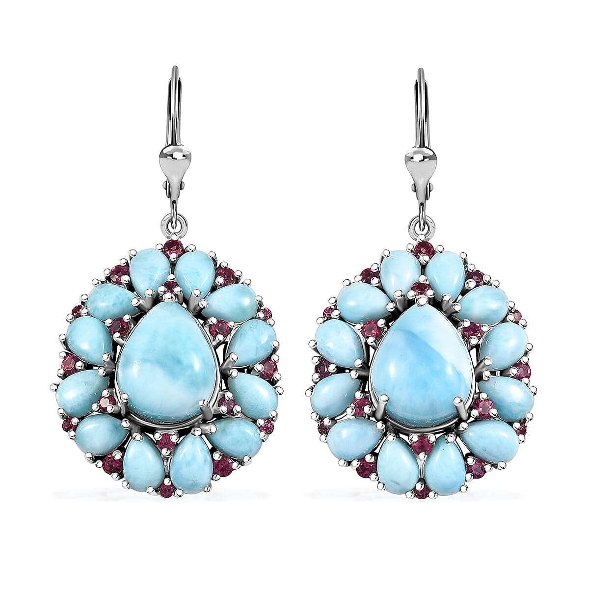 D'Joy Premium Larimar and Orissa Rhodolite Garnet 23.25 ctw Lever Back Earrings in Rhodium Over Sterling Silver