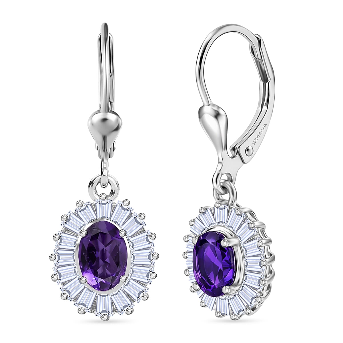 D'Joy Premium Lusaka Amethyst and Moissanite 1.65 ctw Sunray Bloom Earrings in Rhodium Over Sterling Silver