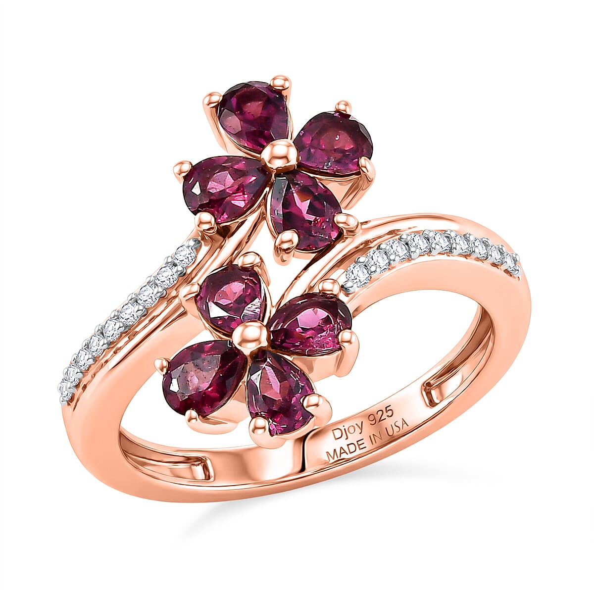 D'Joy Premium Malawi Magenta Garnet and Moissanite 1.70 ctw Ring in 18K Vermeil Rose Gold Over Sterling Silver (Size 10.0)