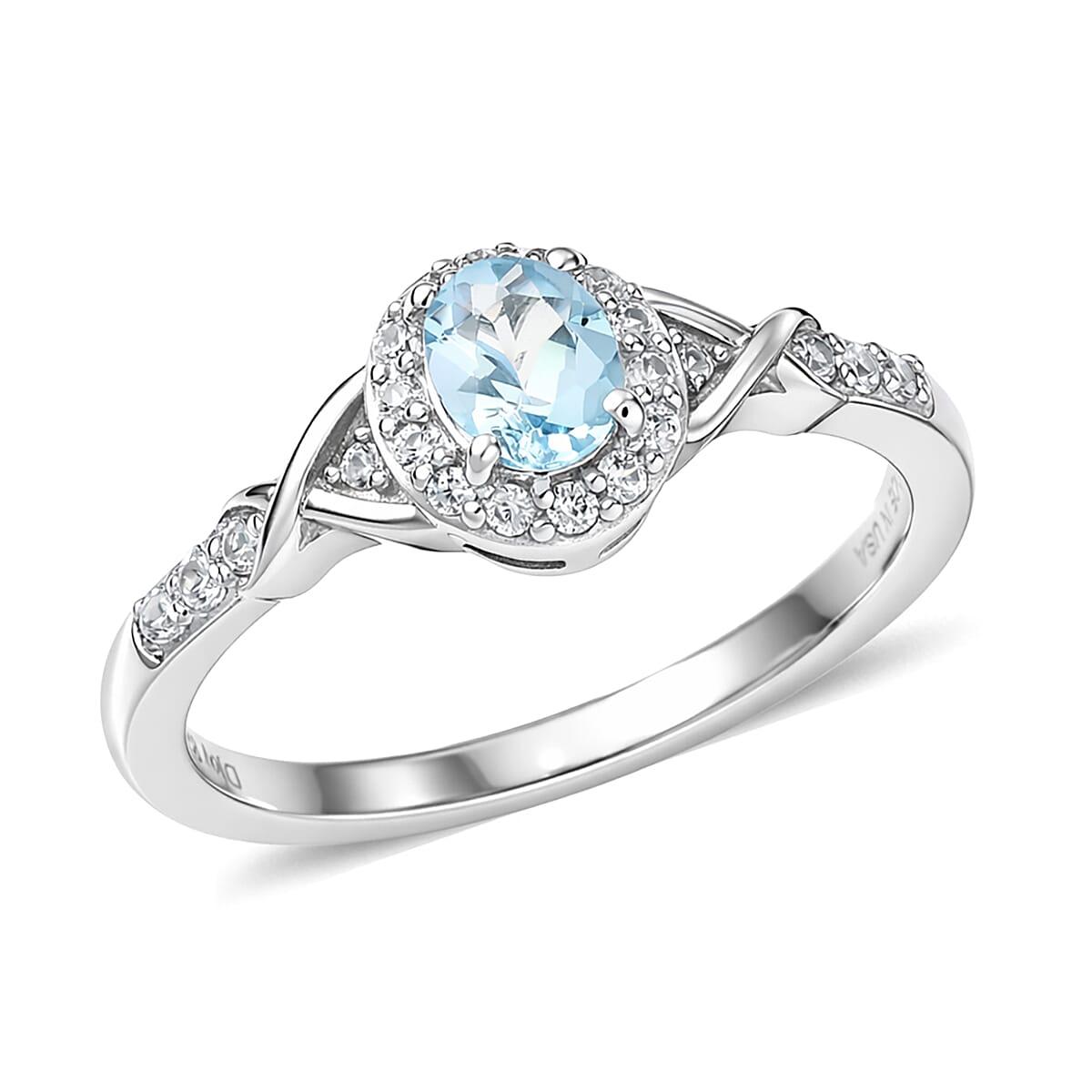 D'Joy Premium Mangoro Aquamarine and White Zircon 0.60 ctw Ring in Rhodium Over Sterling Silver (Size 9.0)