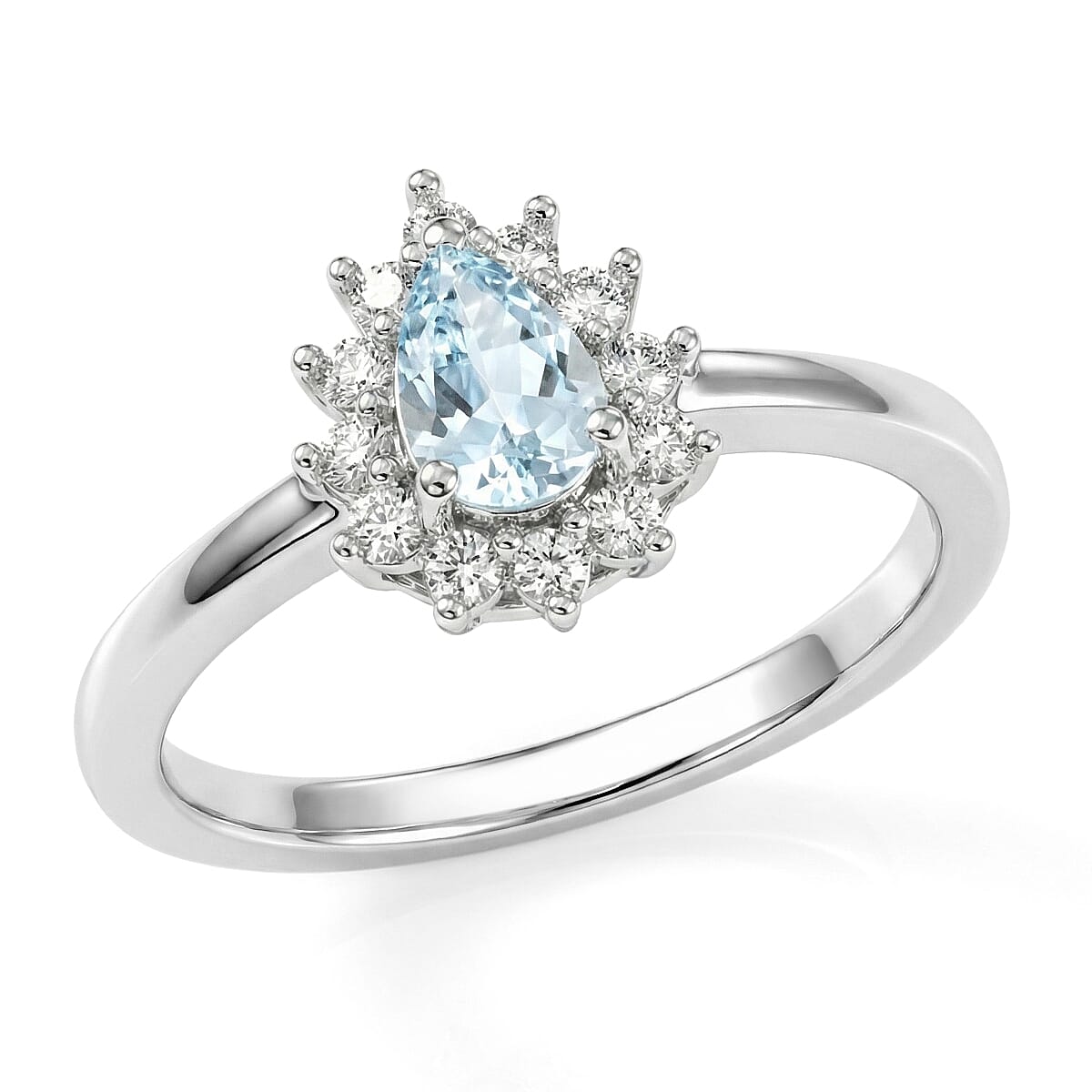 D'Joy Premium Mangoro Aquamarine and White Zircon 0.65 ctw Ring in Rhodium Over Sterling Silver (Size 7.0)