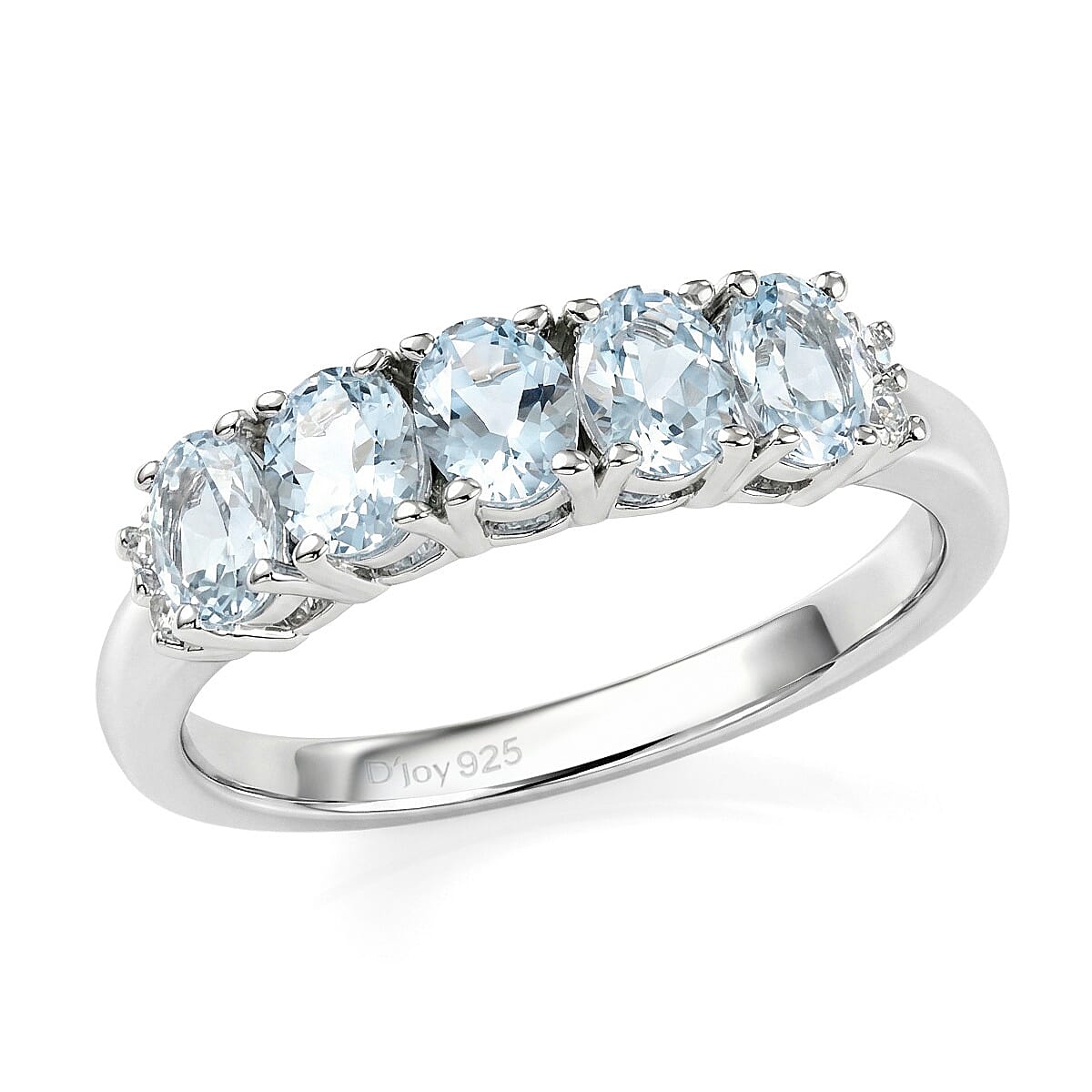 D'Joy Premium Mangoro Aquamarine and White Zircon 0.90 ctw Ring in Rhodium Over Sterling Silver