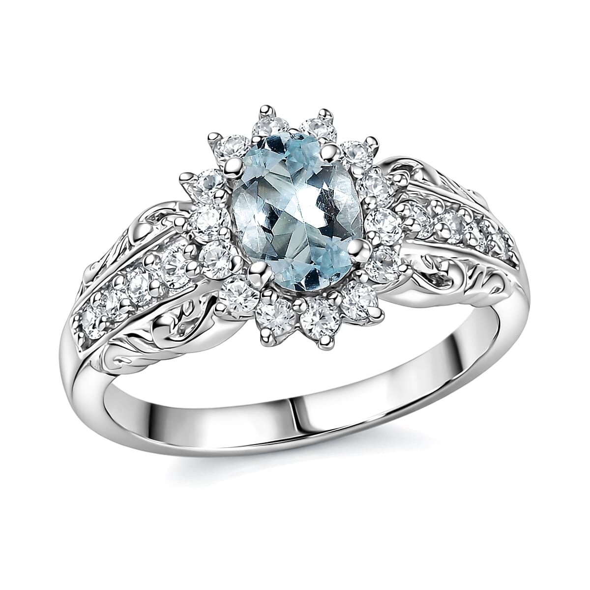 D'Joy Premium Mangoro Aquamarine and White Zircon 1.25 ctw Ring in Rhodium Over Sterling Silver (Size 7.0)