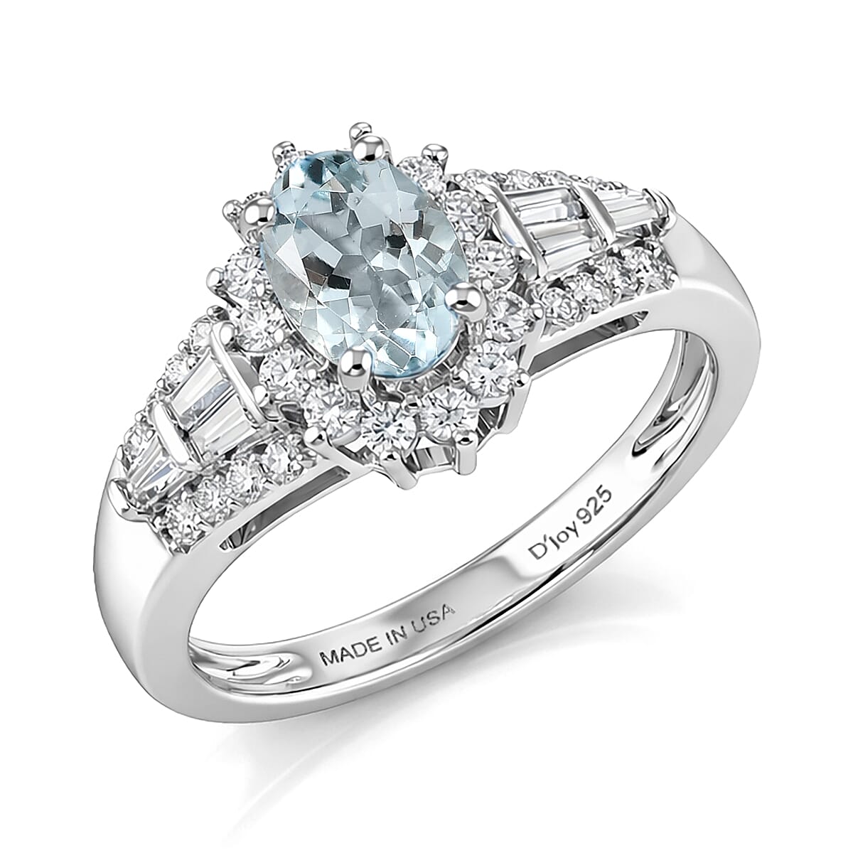 D'Joy Premium Mangoro Santo Aquamarine and Moissanite 1.30 ctw Ring in Rhodium Over Sterling Silver (Size 7.0)