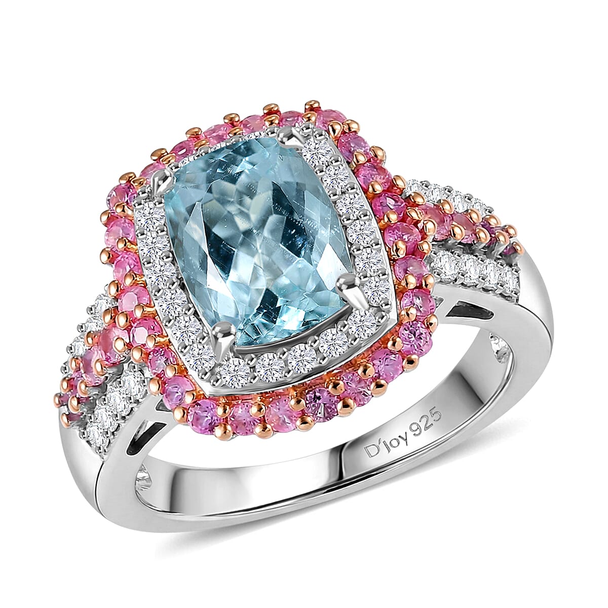 D'Joy Premium Mangoro Santo Aquamarine and Multi Gemstone 3.00 ctw The Coronation Ring in Rhodium Over Sterling Silver (Size 10.0)