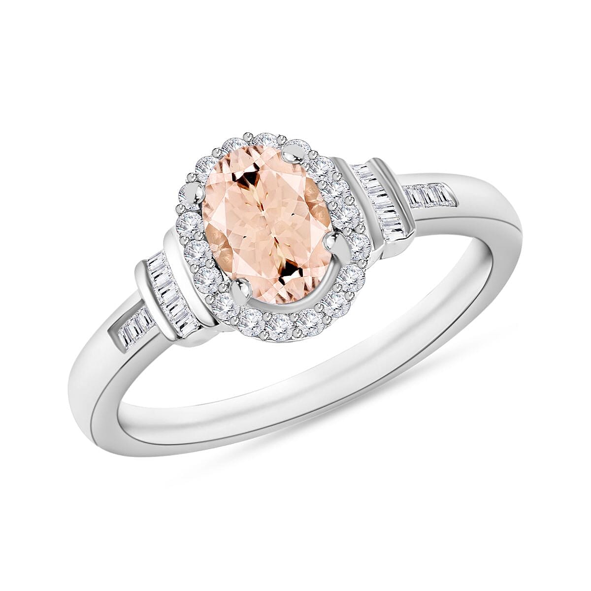 Cherish the Marropino morganite ring in durable metal. This luxury halo ring captivates with its delicate peach hue and brilliant diamonds. Your premium morganite jewelry creates lasting impressions wherever romance blooms.