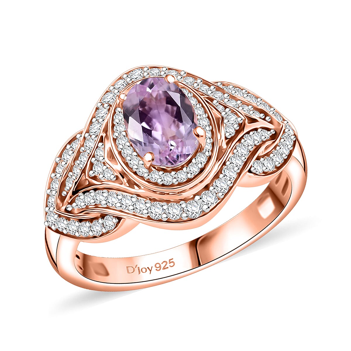 D'Joy Premium Martha Rocha Kunzite and White Zircon 1.85 ctw Blush Embrace Ring in 18K Vermeil Rose Gold Over Sterling Silver (Size 8.0)