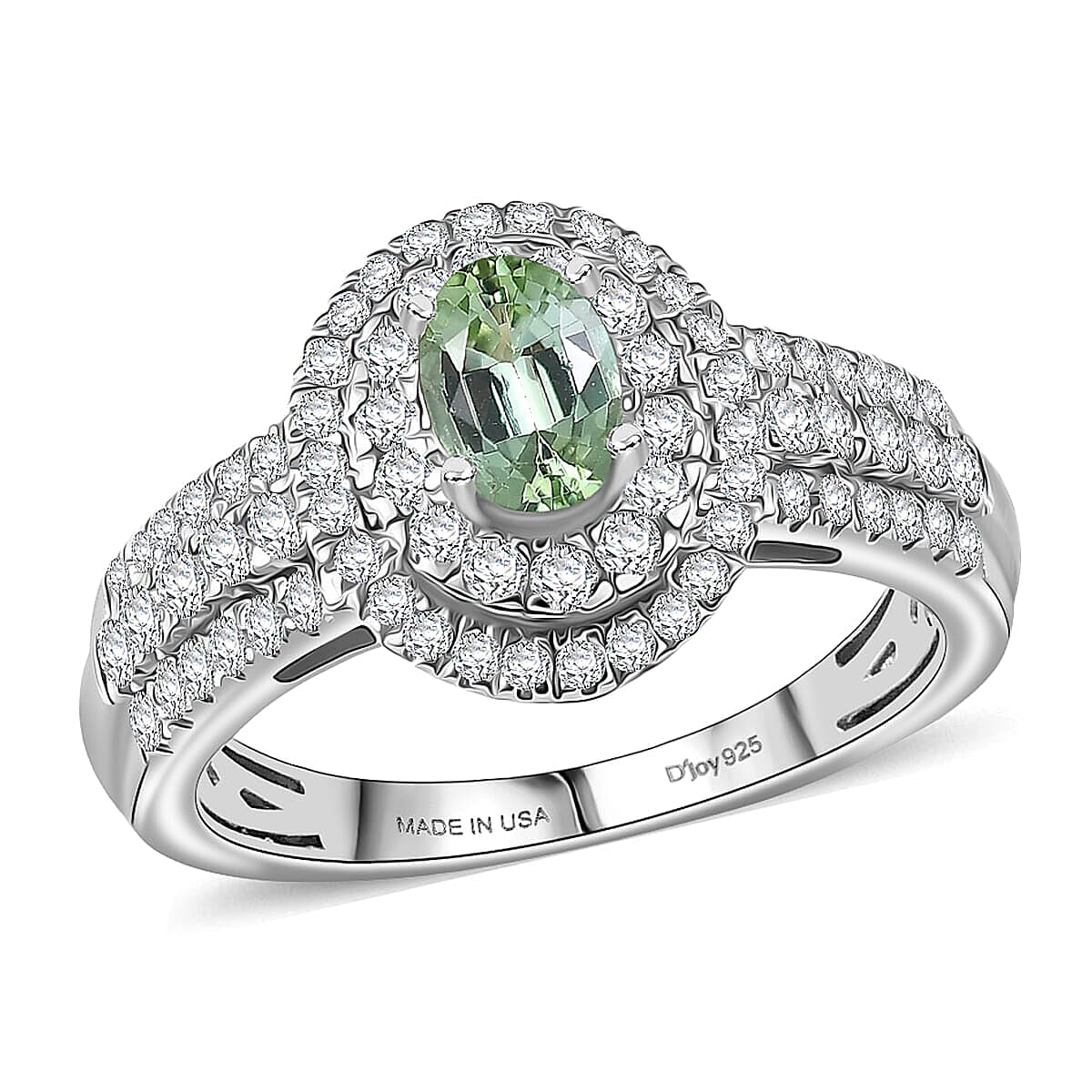 D'Joy Premium Mint Tourmaline, Moissanite Ring in Rhodium Over Sterling Silver (Size 5.0) 1.50 ctw
