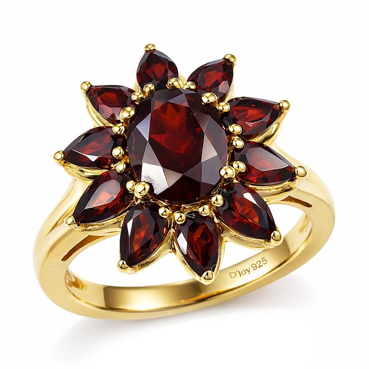D'Joy Premium Mozambique Garnet 5.00 ctw Ring in 18K Vermeil Yellow Gold Over Sterling Silver (Size 10.0)
