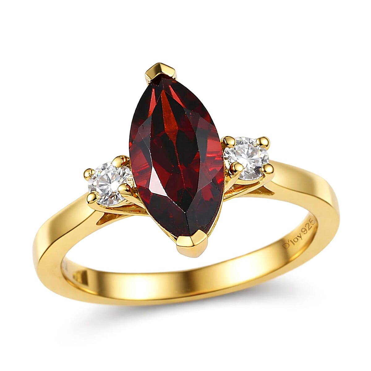 D'Joy Premium Mozambique Garnet and Moissanite 2.20 ctw Flare Majesty Ring in 18K Vermeil Yellow Gold Over Sterling Silver (Size 7.0)